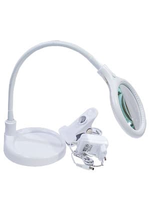 31-0247, Лупа настольная на подставке + прищепка,3Х, подс.30LED, белая