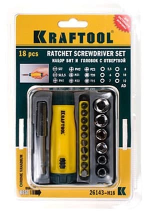26143-H18, отвертка реверс. в мини-боксе 18предм.(биты и голов)