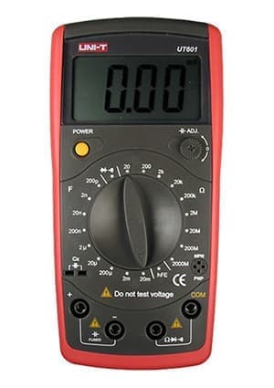 • Специализированные измерители индуктивности и емкости Такие приборы внешне похожи на мультиметры, они имеют небольшую стоимость и удобны в эксплуатации. UT-601 имеет пределы емкости от 2 пФ до 20 мкФ на частотах 800, 80 и 8 Гц. Погрешность измерений составляет 0.5% и 2% в максимальном диапазоне. Кроме емкости специализированный мультиметр измеряет сопротивление и тестирует диоды и транзисторы. UT-602 предназначен для измерения индуктивности в диапазоне от 2 мГн до 200 Гн с точностью до 2%.