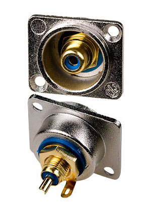 1-292G BL, гнездо RCA металл на корпус с фланцем синий "позолоченный"